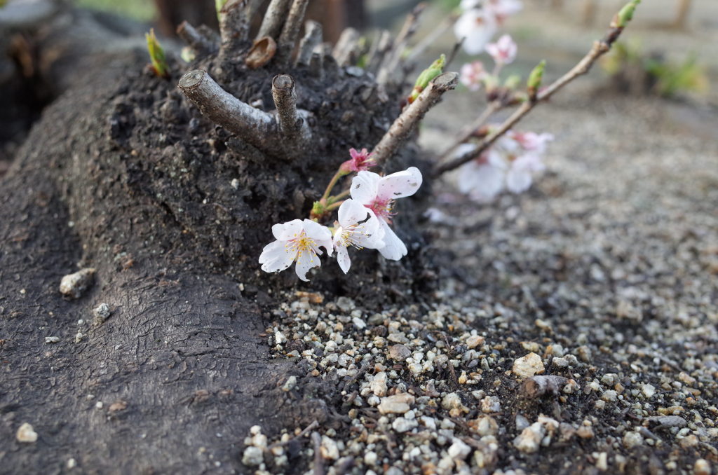 桜。地上から数センチの所に咲く、桜さん。